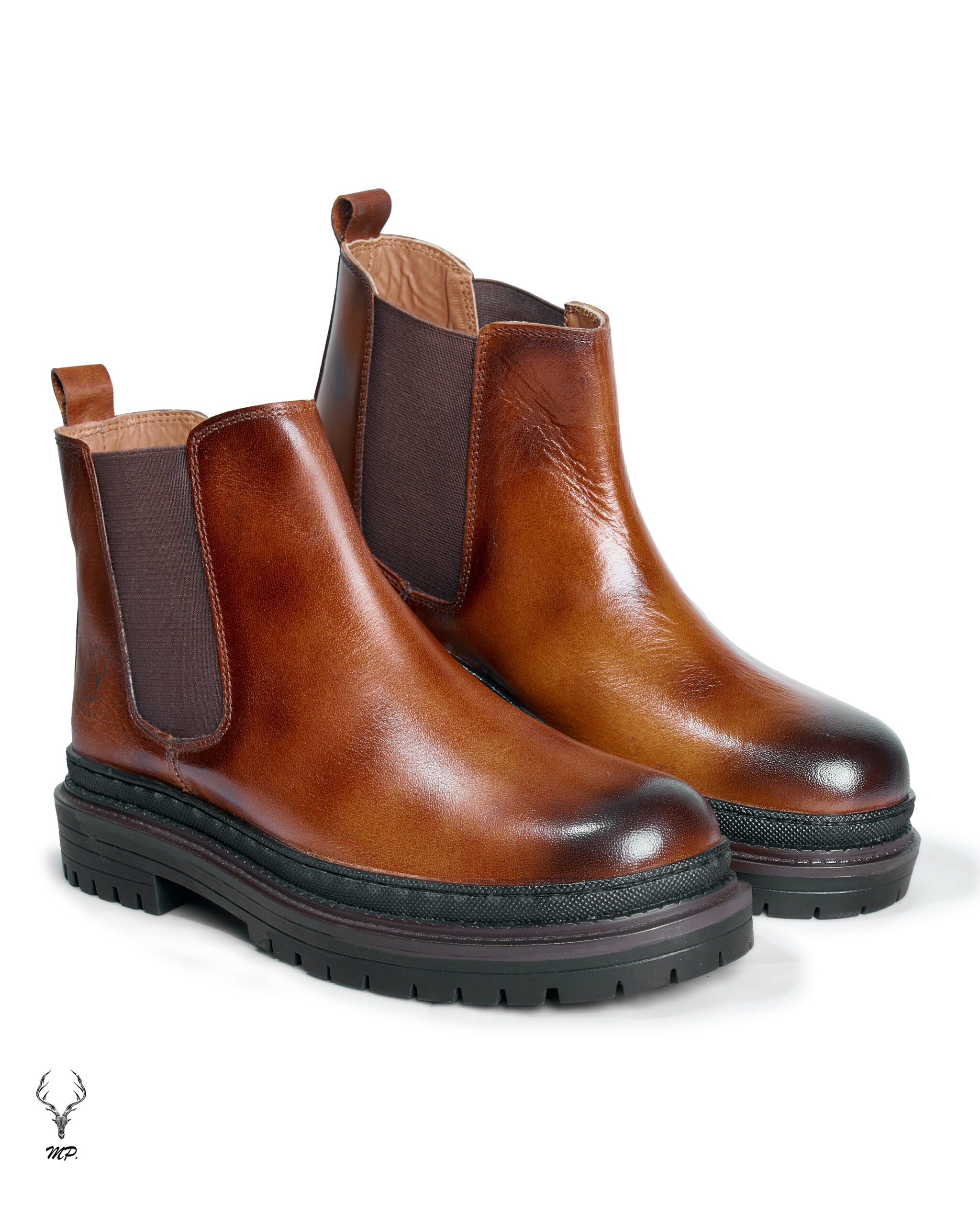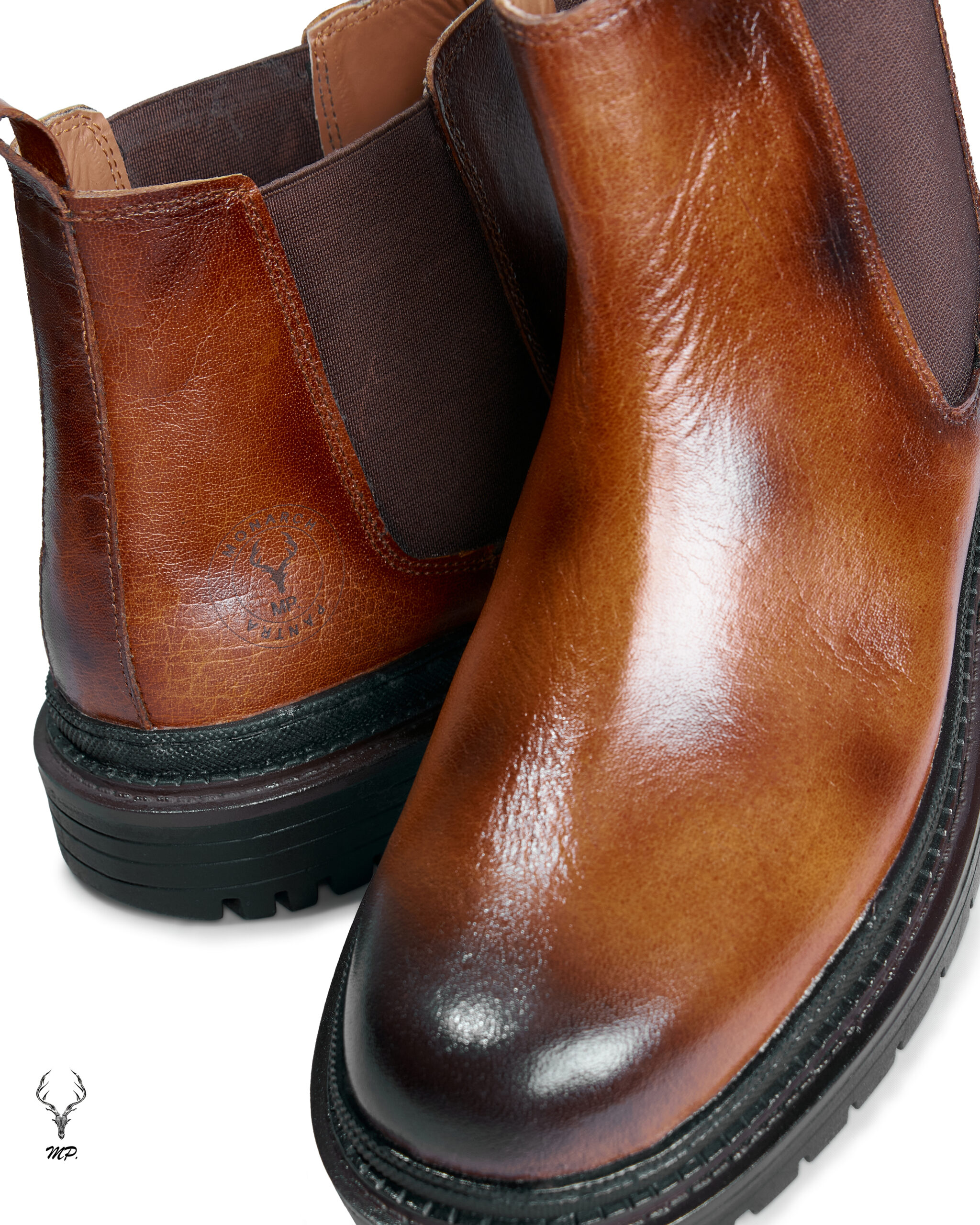 - Darkened toe and hand-finished detailing enhance the rustic charm.