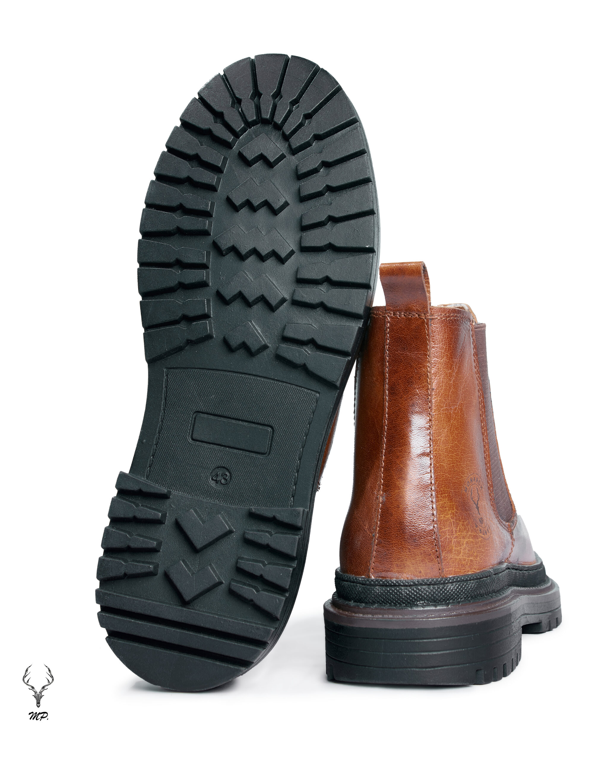 Hunter Horizon Hymn Leather Boots are crafted from premium Crazy Horse pull-up leather, offering a rugged, distressed look with unmatched durability and style. Featuring a water-resistant 1.3-inch TRP sole, lambskin lining, and double stitching, these versatile boots are perfect for any occasion.